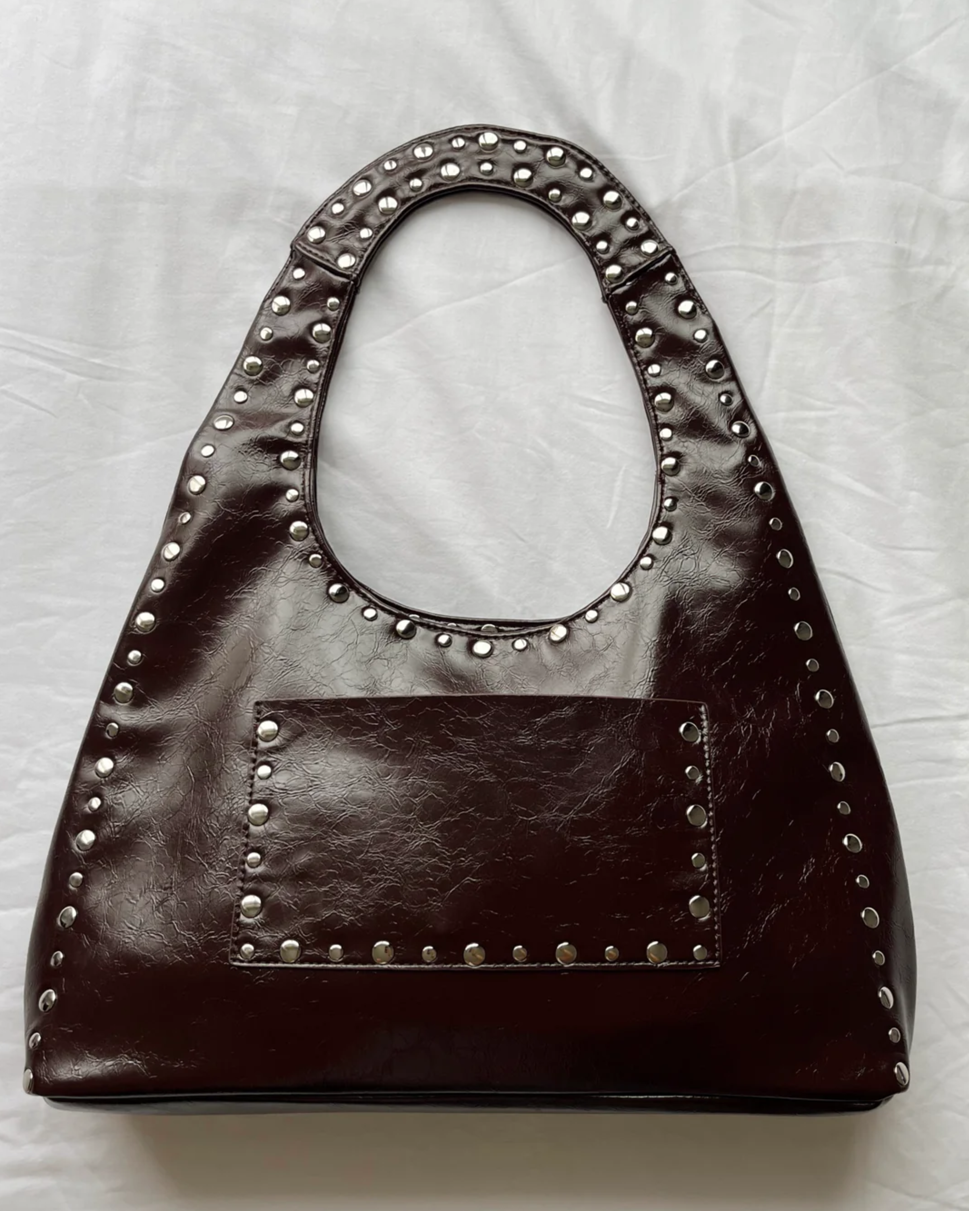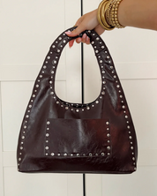 The Dina Bag is here to steal the spotlight on everyone’s wishlist! With its rich brown studded exterior, this bag is the ultimate cool-girl accessory. Channel your inner New Yorker and hit the streets in style—your new bag awaits, and she’s absolutely stunning. 💫