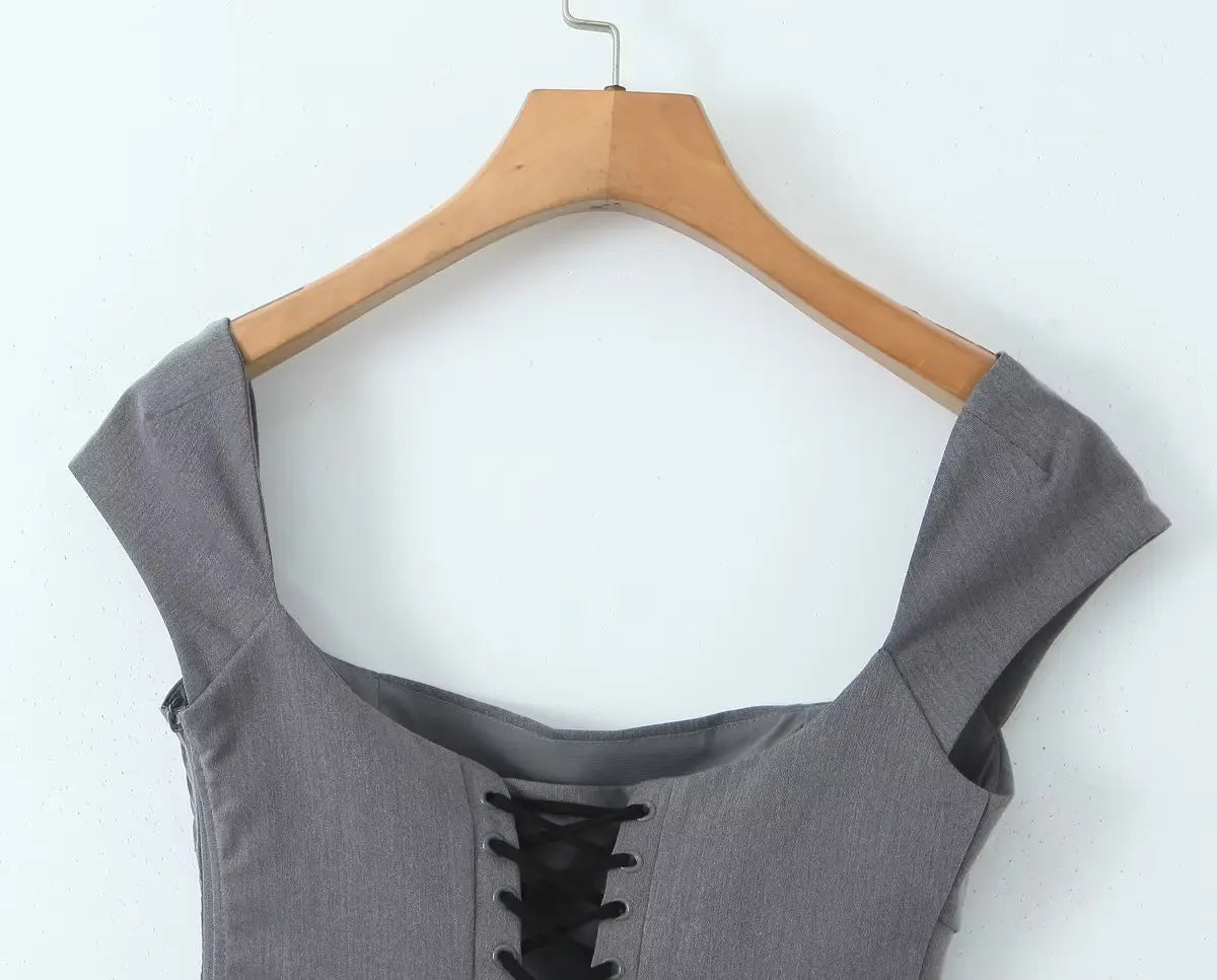 This two piece set features an intricately tailored longline bodice with unique vintage dart details. The top is custom boned to provide a perfectly fitted look for any body shape.